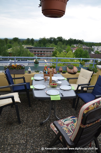 Heute waren wir bei Iris & Michael zum Grillen eingeladen, auch Mama Anita war mit dabei. Das Thema war nach dem Grillen unser Urlaub Kanada, um noch mal die Route zu besprechen. Die Terrasse war dazu schon ganz auf Kanada eingestimmt. Es war ein schöner Tag.